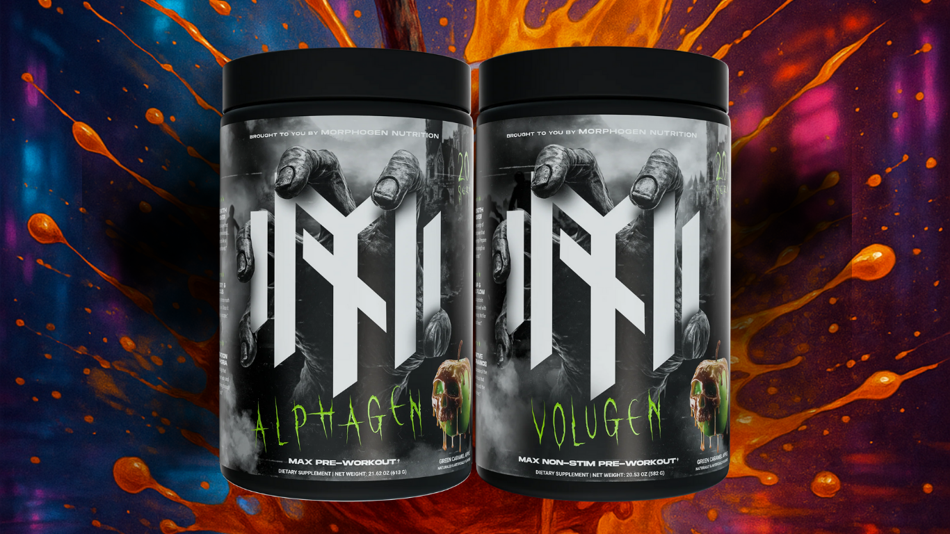 Morphogen doesn’t do subtle. This Halloween they dropped a limited, numbered collector release of ALPHAGEN and VOLUGEN in a Caramel Apple flavor — and both tubs are absolutely loaded.